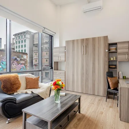 L'appartement Lovely Loft With Views On Bishop - Mtl fournit également une cuisine équipée avec un four et un lave-vaisselle. La station de métro la plus proche est la station de métro Guy-Concordia près de cet immeuble.