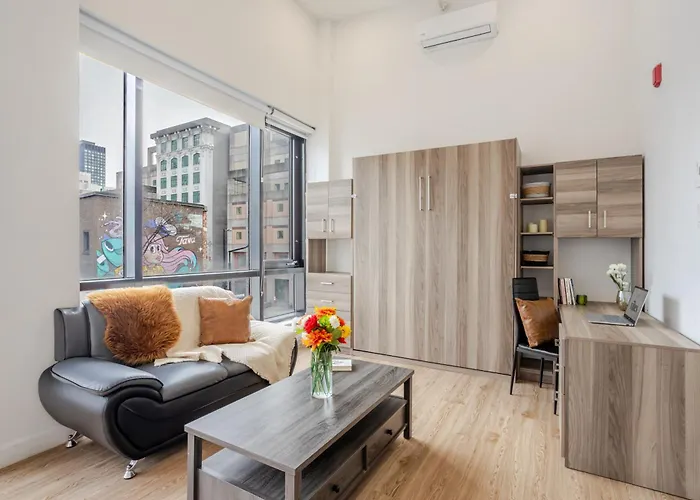 Les appartements Lovely Loft With Views On Bishop - Mtl dispose d'un coin salon et d'une cuisine entièrement équipée, ainsi que de conforts tels qu'une climatisation. L'appartement compte 1 chambre à coucher. Il y a 1 salle de bains à disposition. Un sèche-cheveux et des draps de bain sont également accessibles.